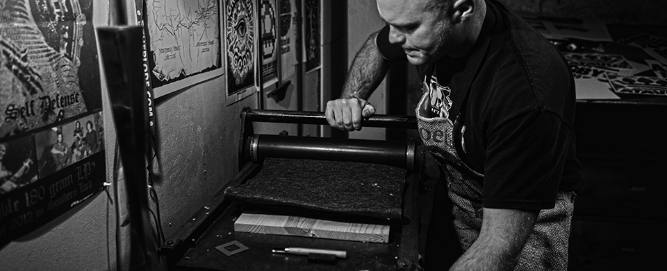 Dive into a collection of hand-crafted, punk-inspired madness with elements of block printing, dirty copy machines, letterpress, and old school grit.